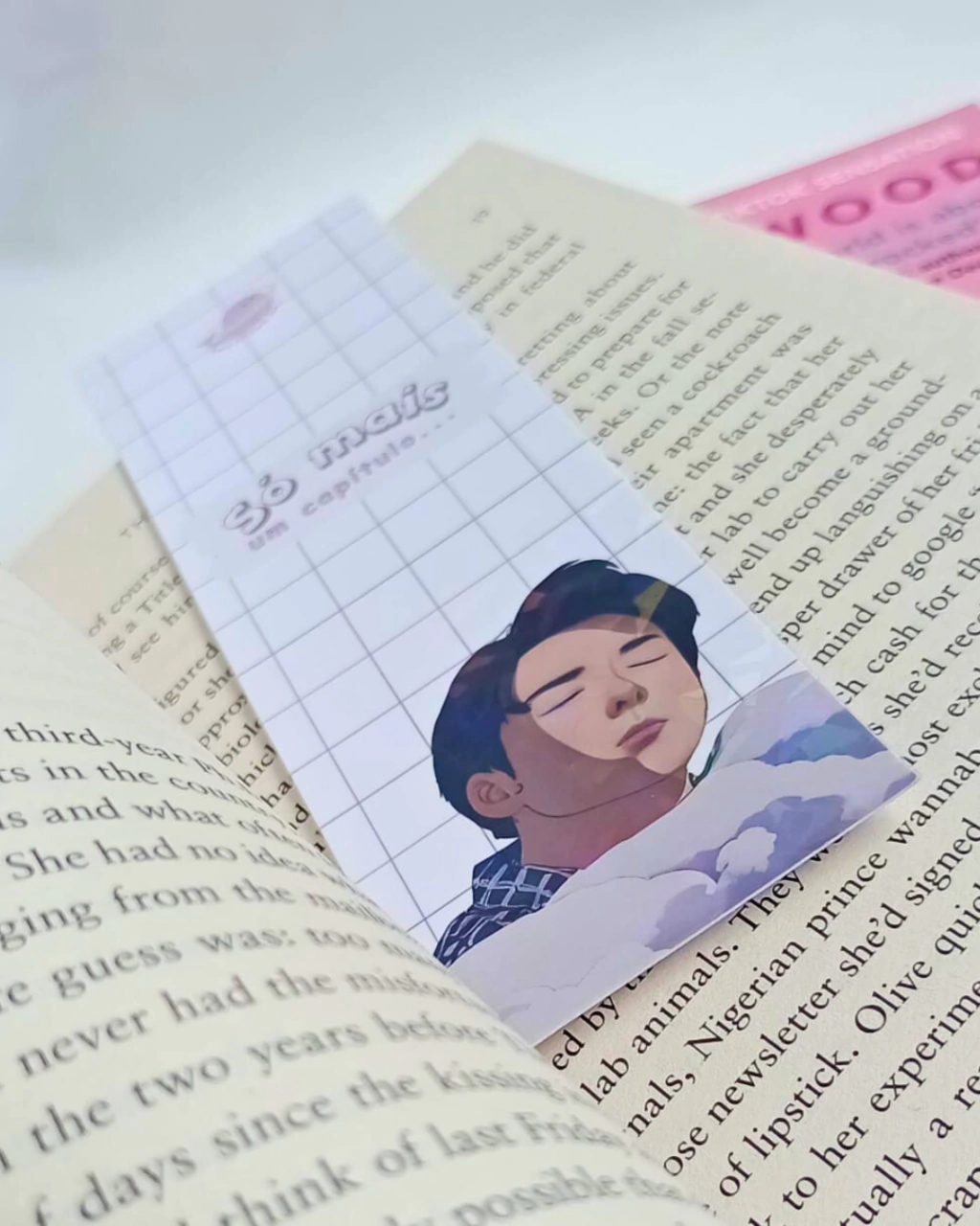 Quando vi esse episódio de Run que o Jungkook fica todo sonolento, lembro de pensar que precisava ilustrar ele para um marcador e deu certo! Com detalhes holográficos e um acabamento premium, ele é ideal para acompanhar todo tipo de leitura e deixar sua estante ainda mais especial. Sempre na melhor companhia: nosso Kookie.